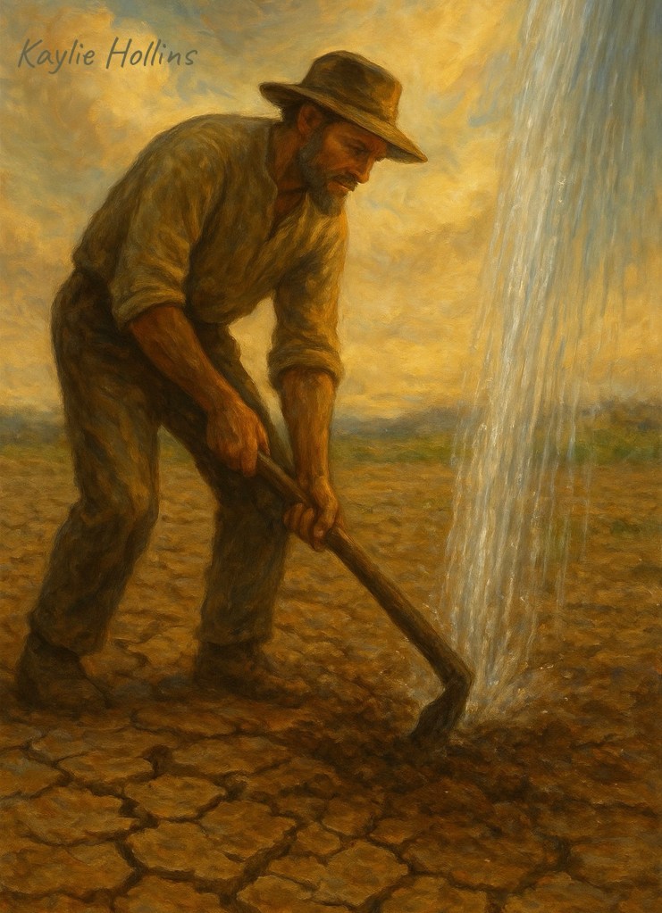 I recently dreamt of a vast field where the dirt was cracked, compressed and thirsty beneath the sun. In the midst of it stood a farmer, steadily breaking the hardened earth. As he worked, rain began to pour from heaven, soaking the soil and softening it again.